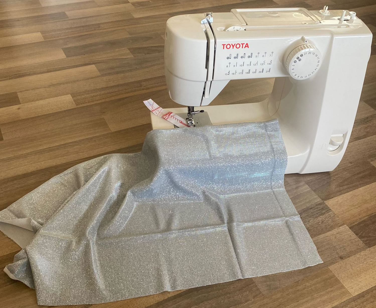 Als ich den Stoff auspackte, fragte ich mich: „Wer verarbeitet den jetzt“? Das fragte ich mich nochmals beim allerersten Versuch, den Stoff zuzuschneiden! Das zugeschnittene Teil sah aus, als hätte eine Katze mit allen ihr zu Verfügung stehenden Pfoten und ausgefahrenen Krallen voller Freude damit gespielt. Beim dritten Mal zuschneiden gefiel mir das Resultat weitaus besser! 😍Ich bin hell begeistert von diesem Glitzerstoff!